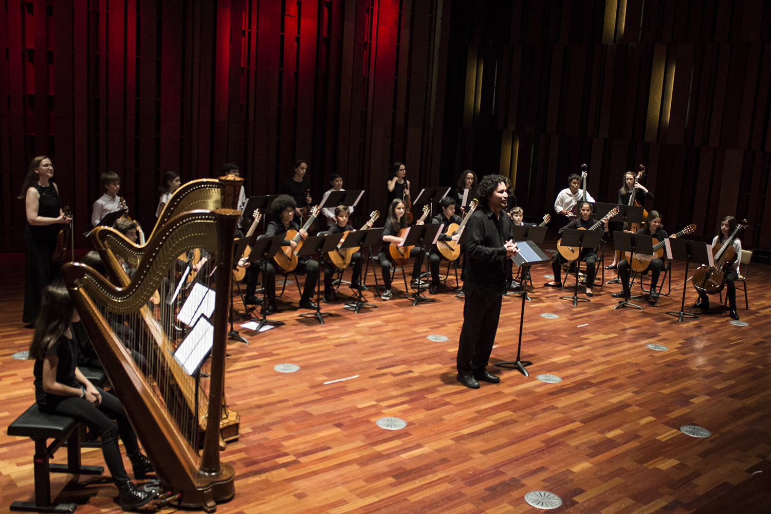 A grande novidade, como para os alunos como para os professores, foi a integração de harpas no conjunto de cordas. Ambas a harpistas são alunas da maravilhosa Angelica Salvi que fez com que o evento fosse possível.